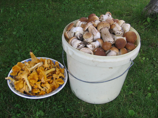 Боровички валом идуть, мы вечерком позавчера скатались опять, две корзины махоньких набрали, большие и не брали. Заготовки сделаны в этом годе, на соление осталось начикать и все.