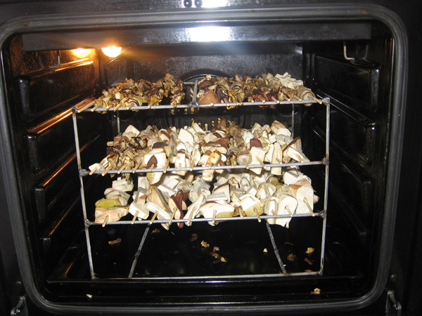 Я раньше сушил в духовке, не очень эффективно. Теперь сушу в специальной сушилке "Суховей". За ночь 4 яруса грибов высыхают очень хорошо. Принцип в продувке сухим подогретым воздухом (до +70). Там же сушу яблоки. Но наверное самый лучшей способ, как делала в моем детстве бабушка в деревне - сушила в печи.