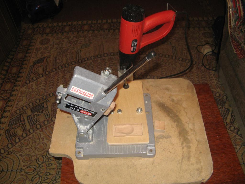 А еще так получилось, что раньше я болгарку использовал, чтобы шлифовальный круг крутить. И крепил ее на приблуду, с помощью которой из болгарки отрезная пила делается.