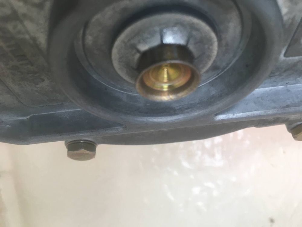 Именно у меня он выходит наружу , на конце вала расширение диаметра коническое и перед ним шайба плотно посажена на вал , вот может она немного просела ниже ?