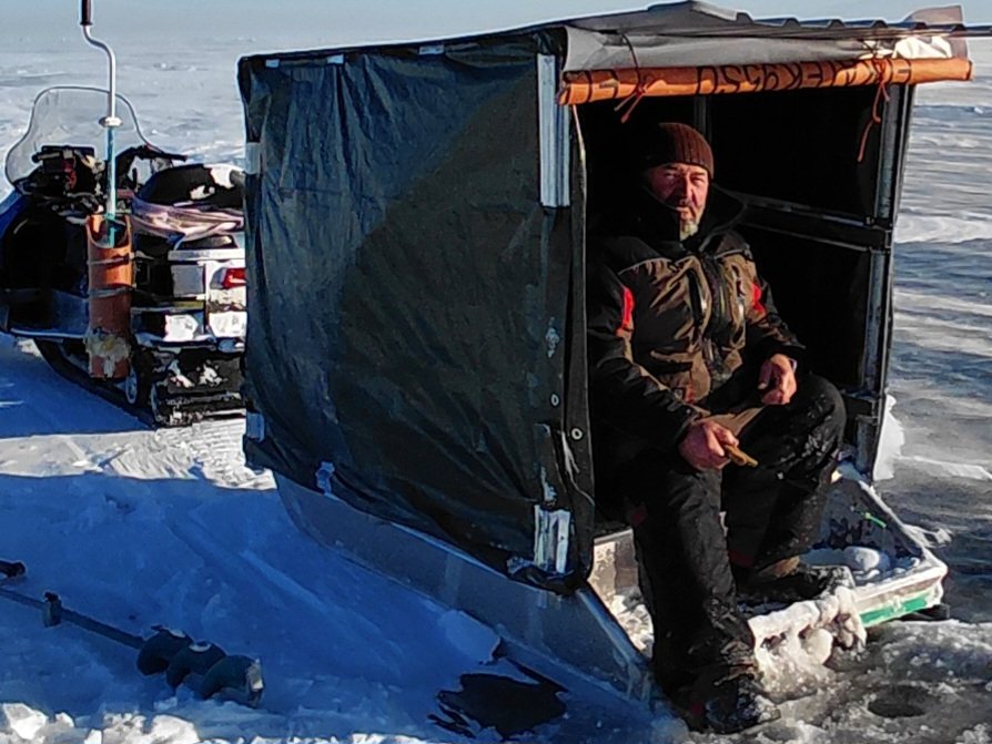 Отрыбачили , холод , ветер , правда солнце весь день , в кибитке сидишь без рукавиц .