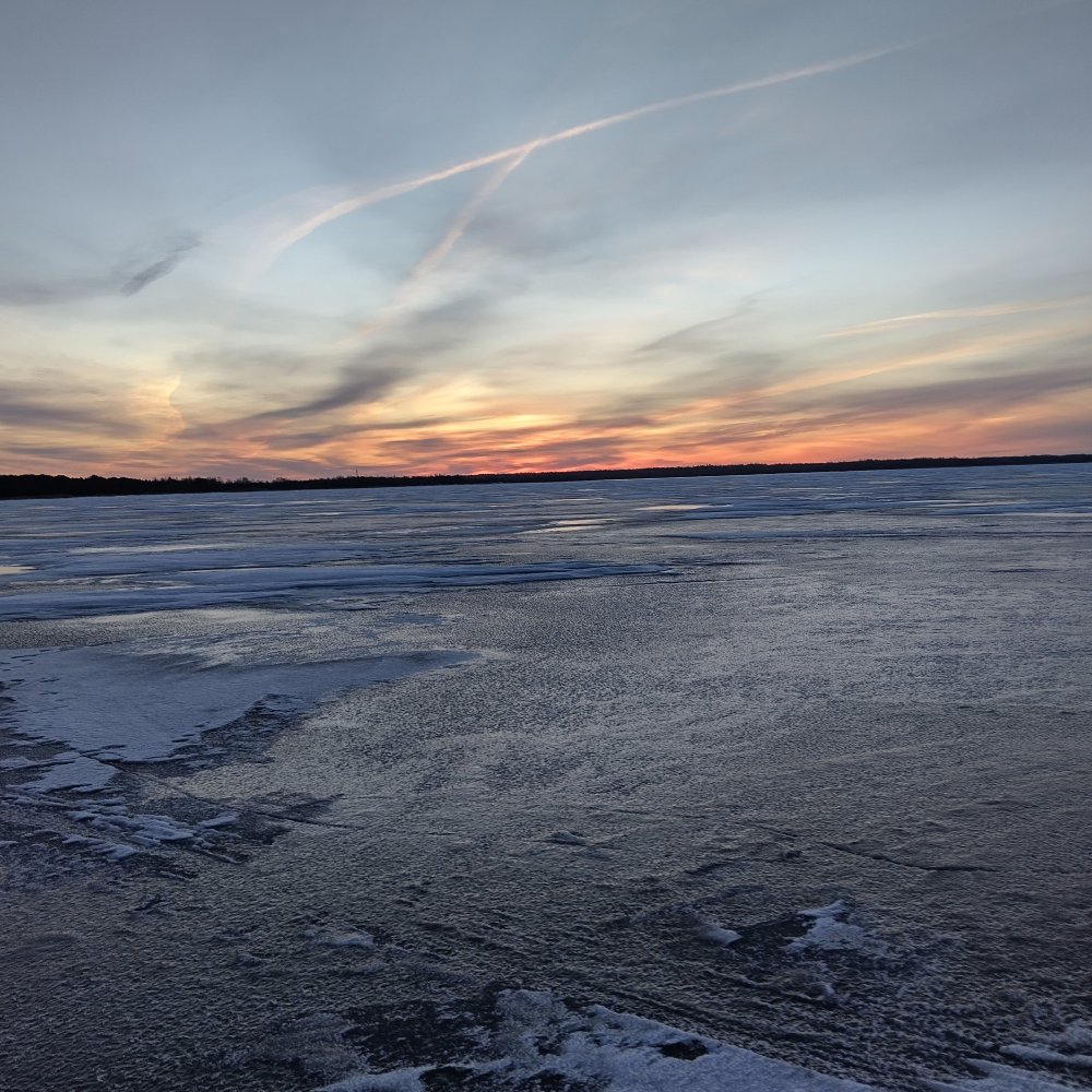 У нас утром -9, ясное небо и звёзды. Уже в Йыхви -4,5 и далее до озера столько же. На берегу ветер умеренный, но чем дальше в озеро, тем сильнее.