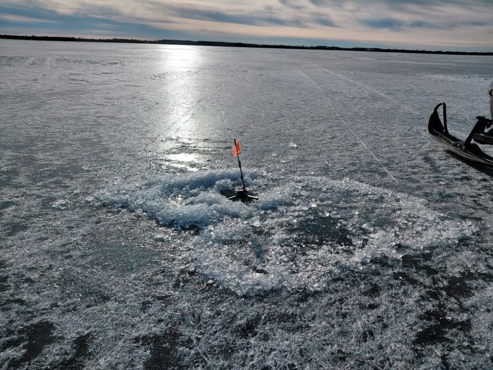 Вышел в озеро в 15.00 , типа посидеть на мормышку , 800 метров от берега , со второй лунки пошли поклевки , на три ерша один окунь , поставил жерлицы на налима , утром проверим .