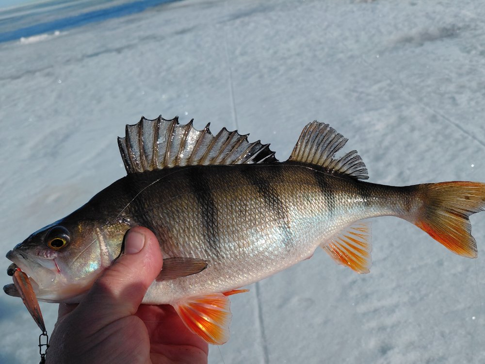 Не о чем писать, налимы сегодня днём не клевали, окуни на блесну одиночки. На мормышку местами берет хороший окунь, плотва с подкормкой клюет, но без фанатизма. Лично у меня, в плане улова, худшая рыбалка в этом сезоне. Но я большую часть дня потратил на поиск налима, т.к. настоятельно попросили ничего другого к 8-му марта домой не везти.