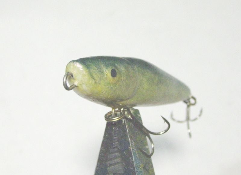 Длина -7 см, вес -8 гр., тонущий, но, чтобы заглубить его хотя-бы на метр, нужно делать внушительные паузы. В воде располагается хвостом вниз под углом более 55 градусов, при потяжках по диагонали бодро поднимается в верхние слои, так как подбородок сделан в виде лыжи.