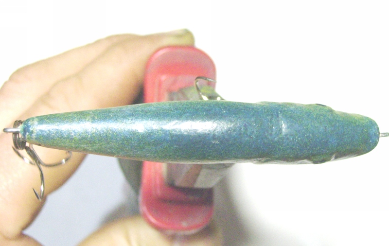 При изготовлении планировался менее экстремальный крен на хвост, но вес магнитной капсулы с содержимым оказался великоват, поэтому я положил маловато компенсационной свинцовой огрузки в голову.