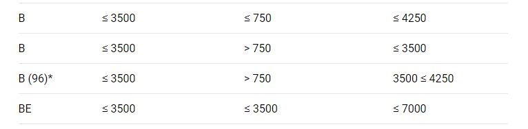 В категория это автомобиль с регистровой массой до 3500кг ИЛИ этот же автомобиль вместе с легким прицепом О1 до 750 кг ИЛИ тот же автомобиль вместе с тяжелым прицепом О2 при условии, что масса автопоезда не превышает 3500кг. В случае если автопоезд состоит из машины 3500кг + прицеп О2 и их суммарная регистровая масса не превышает 4250кг, то это В96, если выше 4250 то это ВЕ.