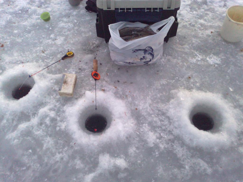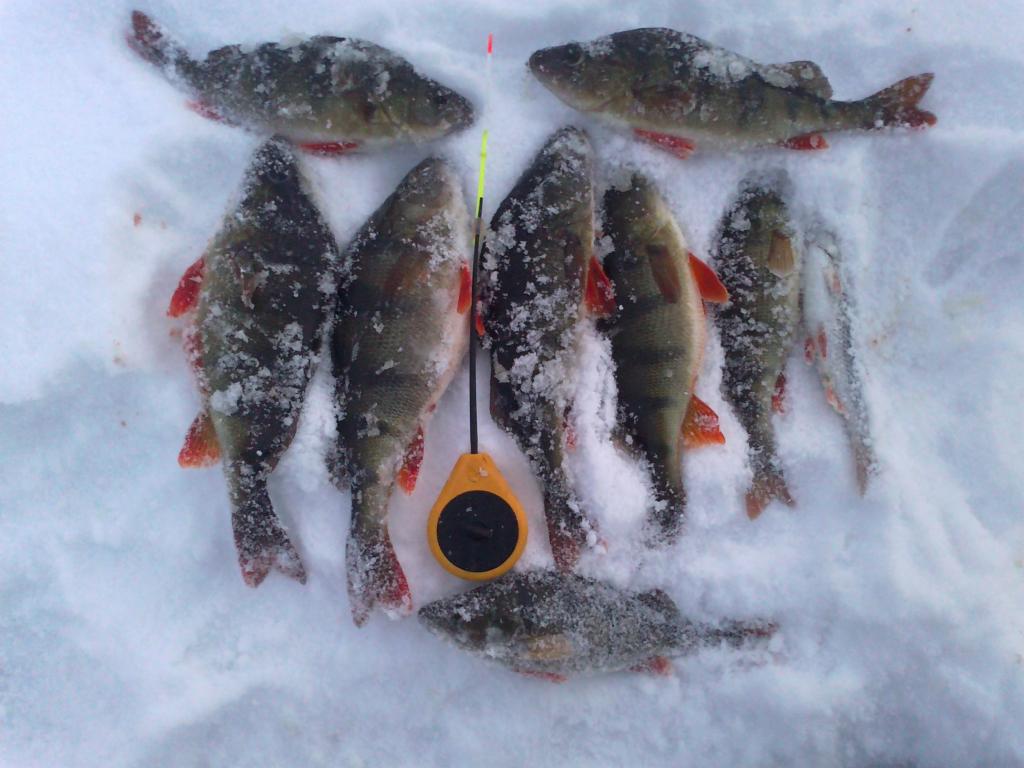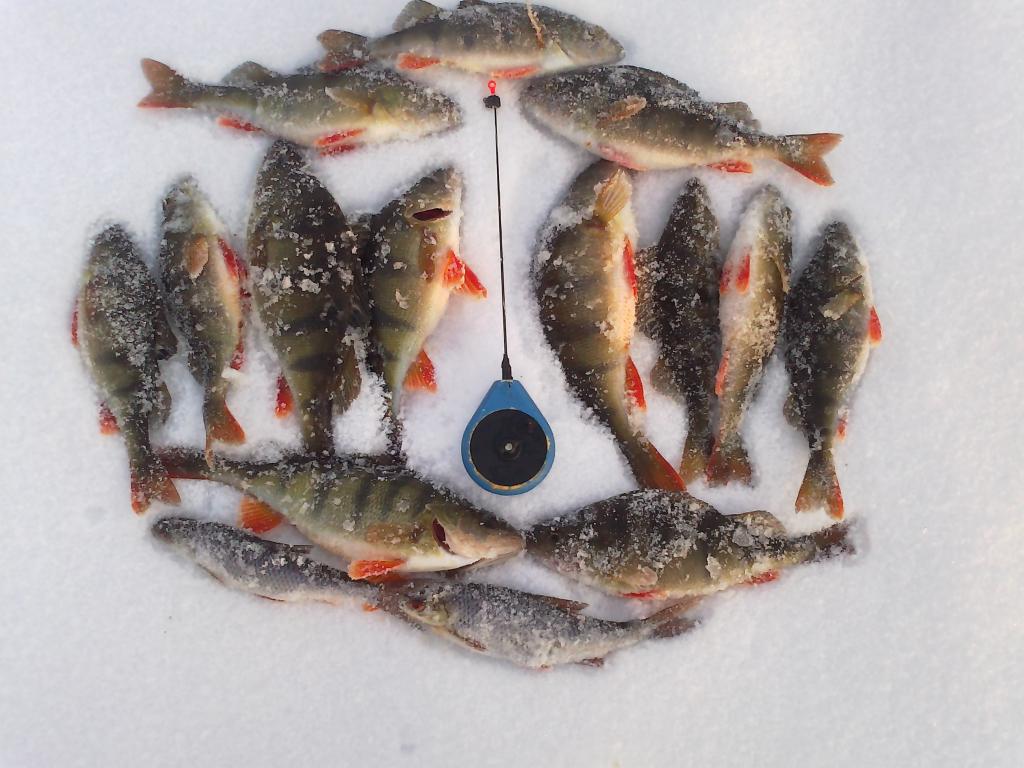 Всем доброго времени суток.Ребята,спасибо за добрые отзывы.На самом же деле,просто везёт.Я ж никогда раньше окуня на водохранилище и не ловил,за исключением нескольких пробных,и не очень удачных,раз.Нарывался на мелюзгу,либо вооще мимо,и не цепляла эта рыбалка.Так уж получилось,что эта зима оказалась почти полностью в моём распоряжении,решил опять попробовать.По подлещику,даже не знаю,могу и ошибаться.Последнии пару лет у меня летом серьёзные проблеммы стали с ним.Обычно,где привык ловить леща,всё напрочь забито подлещиком,но ему этого мало,он и плотву оттеснил с привычных мест.И зимой,действительно,я прежде его не встречал на водохроне,а тут попробовал,и оказалось влёгкую ловится,без особых выдумываний.Хорошо это,или плохо,судить не берусь.Окуни да,действительно красивы,без хвастовства.Фотографирую последнее время телефоном,тяжело передать размер,вижу,поэтому и стараюсь,чтобы хоть немного было понятней,ложить для сравнения,хоть что-то.Уменьшать не охота,но и спецом преувеличивать не вижу резона.Не первый год в паутине,и знаю не один способ,как люди преукрашивают размеры уловов,сам же это вижу с ходу.Триста,да,большие я думаю даже с хвостиком.если уже не следующая сотня.Одного в лунку с третьего раза завёл токма.По поводу в какое время лучше берёт,предугадать невозможно.Ни одной похожей рыбалки.Сегодня в очередной раз в этом убедился.Иногда казалось,что лучше и крупнее под завершение,потом наоборот с утра,потом опять к вечеру,последнии несколько рыбалок показалось,что вообще в обед лучше всего.А сегодня с утречка морозик давит,а берёт не плохо,и не боится.Где-то на четвёртой лунке,мелочишка проклюнулась,за ней плотвичка,вслед окушок.Третяя рыба уходит с пирсингом,кто был не знаю.Ну думаю всё.Беру вторую удочку,нет,окунь,ещё окунь.За ними монстр,пока туда-сюда,открутился.Ну теперь точно всё.На удивление нет.Дальше процесс идёт.Так с одной лунки тринадцать рыб.А потом за весь день всего две штучки.И так бывает.Так что угадать то,что хочет рыба практически нереально.Единственное можно попасть в нужное место,в правильное время,когда эти две вещи сойдуться,тут уж не зевай.