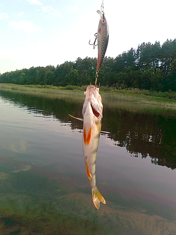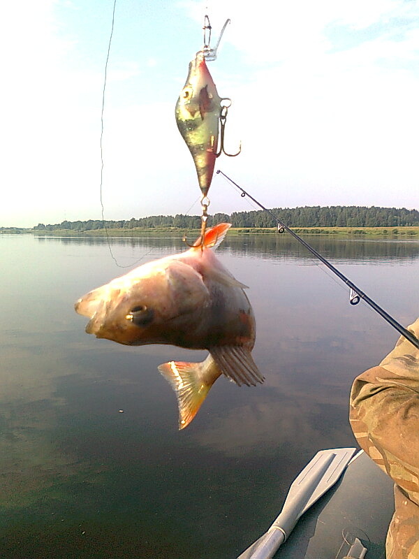 Ну и по теме: не езжу на рыбалку уже с месяц (жара невыносимая), на "крайней'' рыбалке впервые разловил свой воблер-самоделку -потестил немного его, а заодно и свежекупленный спиннинговый комплект. Самодельный воблер (подповерхностник) в сумке оказался в единственном экземпляре, уделил его разлову минут 40, спиннинговал по грудь в воде (был бы спасательный круг, попробовал бы и вплавь), неожиданно для себя поймал трёх окуней. Затем для контроля поставил вполне подходящий к условиям мини-минноу от Storm, выделил ему столько же примерно времени и не увидел ни одной поклёвки...
