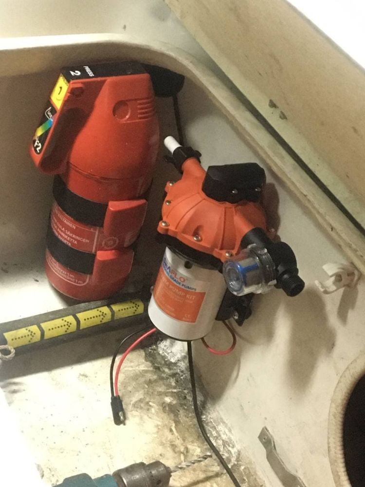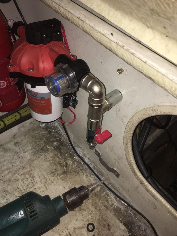 Следующая хотелка - установка помывочной станции , чтобы обмывать лодку на воде . Насос уже куплен и установлен . Жду доставки некоторых комплектующих .
