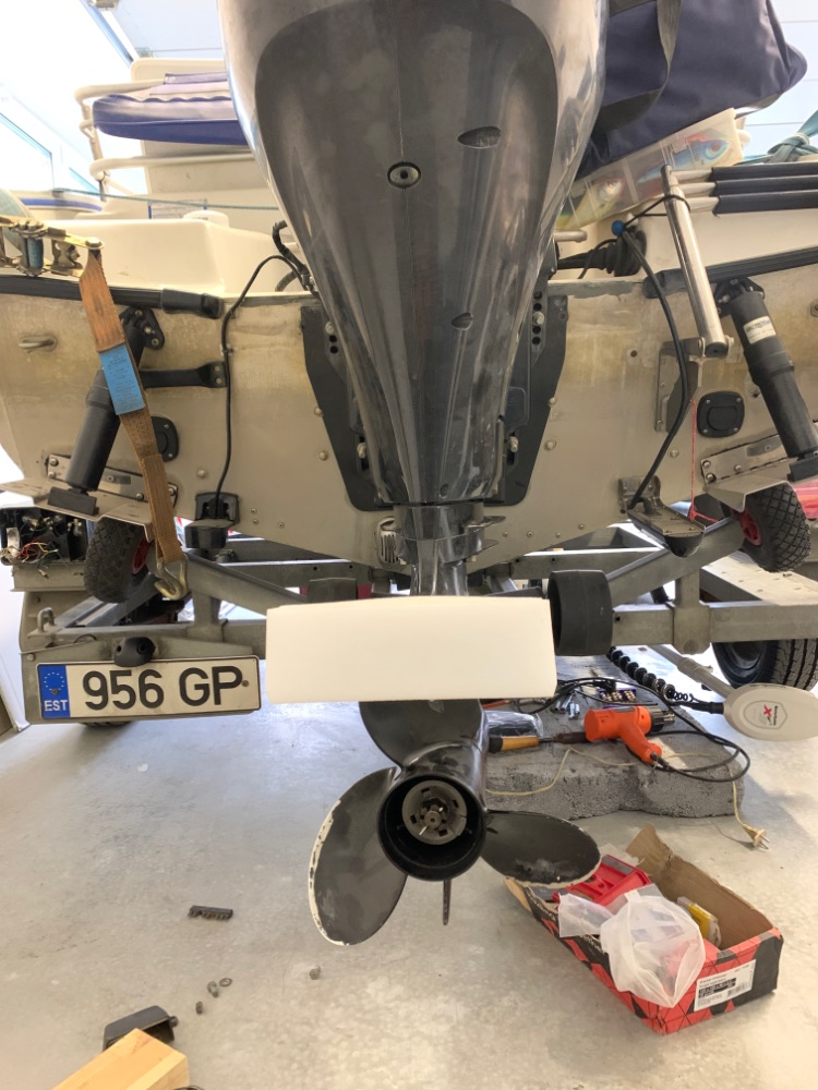 Давно обратил внимание , что на некоторых фоксах стоит носовой поручень . У меня его не было . Решил заморочиться и установить . Сделал эскиз , заказал поручень по своему эскизу из алюминиевой трубы (толщина стенки 3 мм ) . На али заказал фитинги для крепления . Сегодня все собрал проклепал алюминиевыми заклепками , думаю будет удобнее заходить в лодку , особенно малышне.