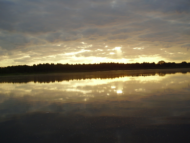 Вчера заскочил под закат на одно лесное озеро, являющееся искуственной запрудой на одной из речек на северо-востоке. Лет 10-ть назад туда заезжали, даже что-то ловили, правда в основном на живца. Подъезда и слипа на озере нет, большкю лодку уже так просто не спустишь.
