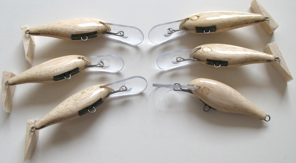 Воблеры из бальзы все длинной 70мм, покрытие 8 слоев лака.Kasper писал(а):А почему никто не выкладывает фотографии плавающего воблера чтобы можно было понять как огружен воблер, а то очень часто задают вопрос про огрузку и расположение грузов. Может стоит взять за правило выкладывать такой ракурс