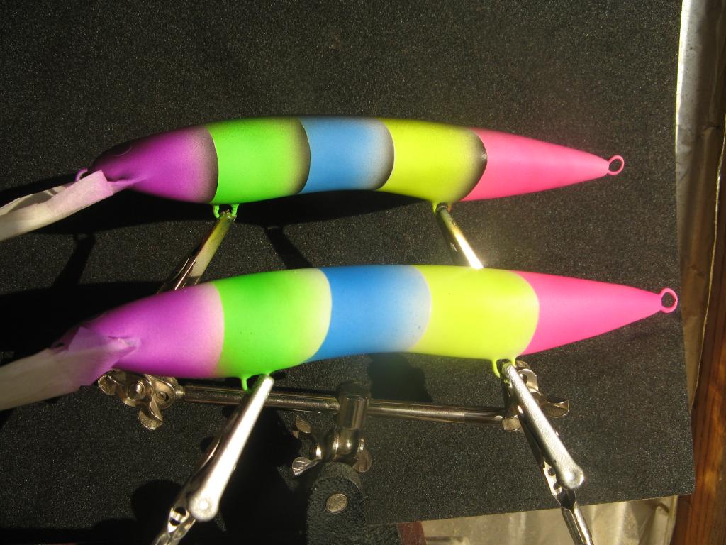 Впечатляют цвета.Я попробовал такую смесь: гуашь флуоресцентная 3 части, лак панельний IР-11 1 часть, вода до необходимой консистенции.Последние так окрашены.vdv писал(а):Приехал - увидел - купил