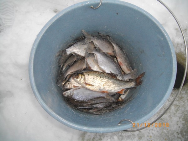 В общем клевало потихоньку. Народ весь сидел на местах и не бродил от лунки к лунке. В основном густера. Иногда проскакивала мелкая вимба. На гостинцы взял домой немножко рыбки.