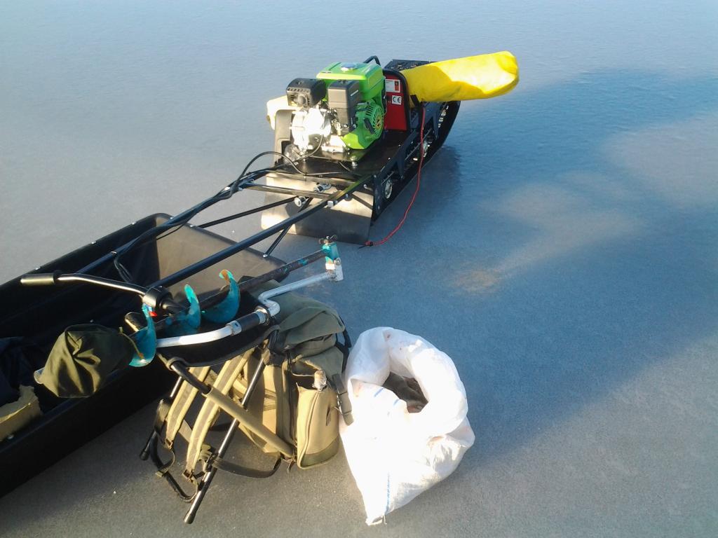 , но около нее уже была машина с тросом, не стали останавливаться. Дальше примерно в 5 км доехали до молодого льда. Выскочили на него, чуть проехали, но решил вернуться на старый. Машины шли и по нему, но мы не поехали. На переходах старого и нового льда местами всего 15 см. Новый лед местами идеально гладкий, машину несколько раз красиво заносило. Разница между старым и новым льдом примерно 30 см. Тольщина нового - около 20 см. Чуть подумал и вернул технику на старый. Ветер просто сносил и комфорта не было в принципе. Но это касалось в основном передвижения, сидеть было в принципе приемлимо. Были рядом с фарватером. Рыба шевелилась весь день, много было дуплетов и даже триплеты, но размерного было очень мало. И переход на другую лунку, в надежде на попадание в край стаи на размер рыбы не влиял. В первой половине дня - просто единичные зачетные рыбки при постоянном клеве. С балансиром в этот раз было чуть хуже, только при подсадке глаза окунь начинал проявлять интерес, даже при пулеметном клеве на комбайн. Чуть получше с размером стало между 13.30 и тремя часами. Днем ветер растащил тучки и вышло солнце, как-то скрасив пребывание на ветру. У одного из концессионеров случилась поклевка пдводной лодки, закончившаяся обрывом лески 0,3, видимо уставшей. Около 16-ти закончили. Многокилограммовых уловов не было, но на хорошую уху размерной рыбы получилось у каждого. Уже в сумерках выезжали, также объезжая снежные барханы. Идеальный выезд на берег за день размесили, да и поземки чуть добавилось. Но с разгона удалось преоболеть и эту засаду. Дальше за неспешными разговорами дорога домой. Похоже в этот район больше смысла ездить нет, рыбу там основательно проредили.
