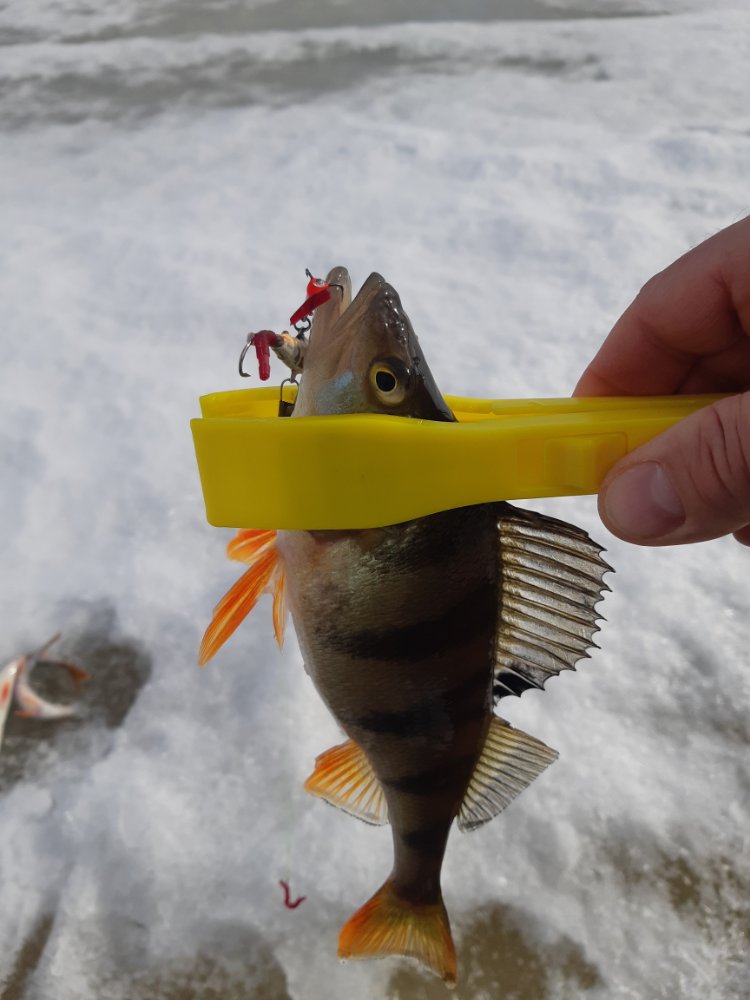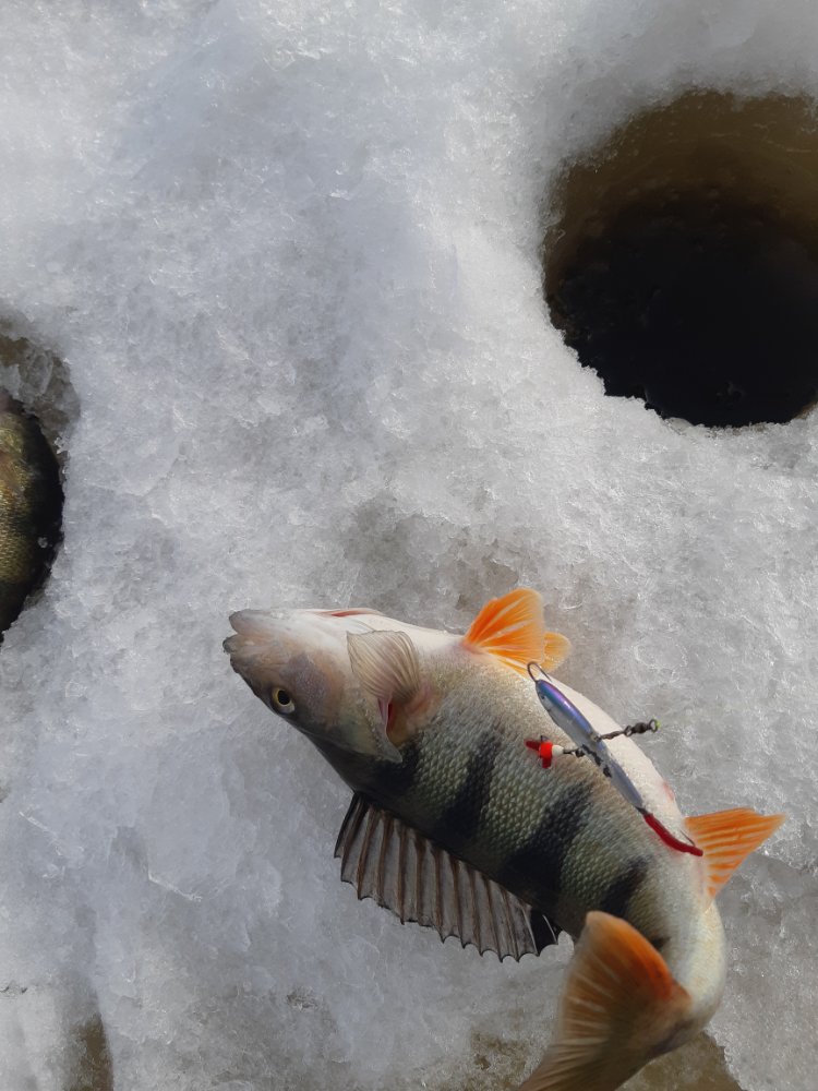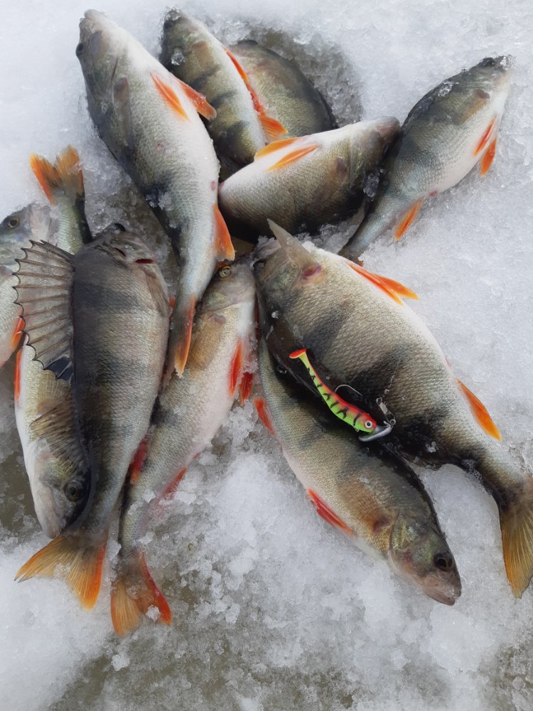 Только после обеда удавалось выцепить редкого мерного окуня. За весь день наскоблил 5,5 кг. Попался и один бонусик 920 гр.