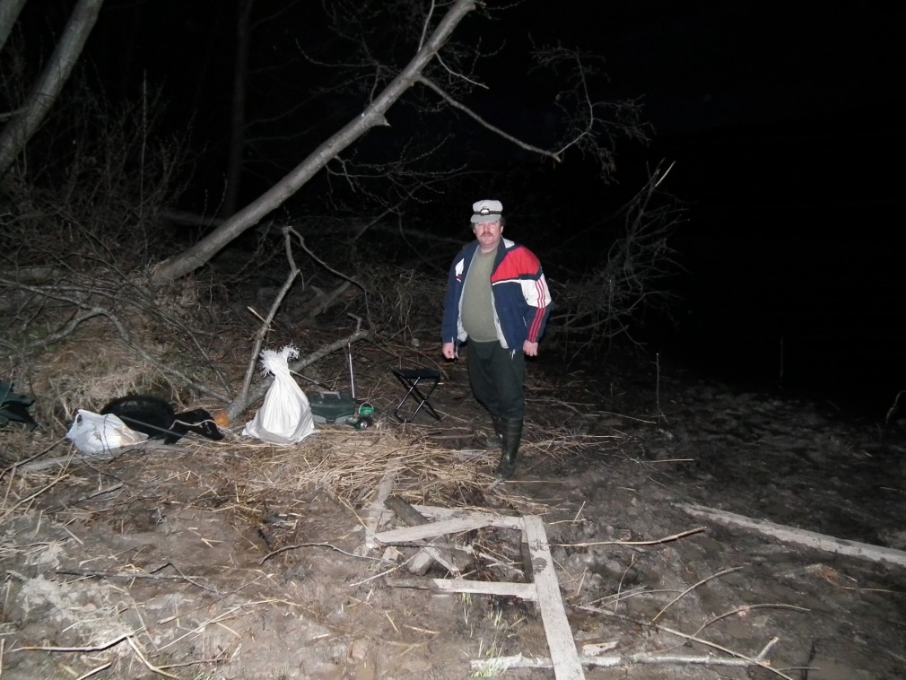 На место приехали около девяти вечера в пятницу. Наше место уже занято. Устроились недалеко. Боря забросил донку, я удочку. Пока ничего. Вскоре с нашего места уехали и мы перебрались. Ну вот! Теперь можно разположиться получьше. Уже стемнело. Погода великолепная. Тепло, ветра нет, звёздочки сияют. Развели костерок, попили чаю и около часа ночи неровным шагом и пошатываясь пошёл поспать.