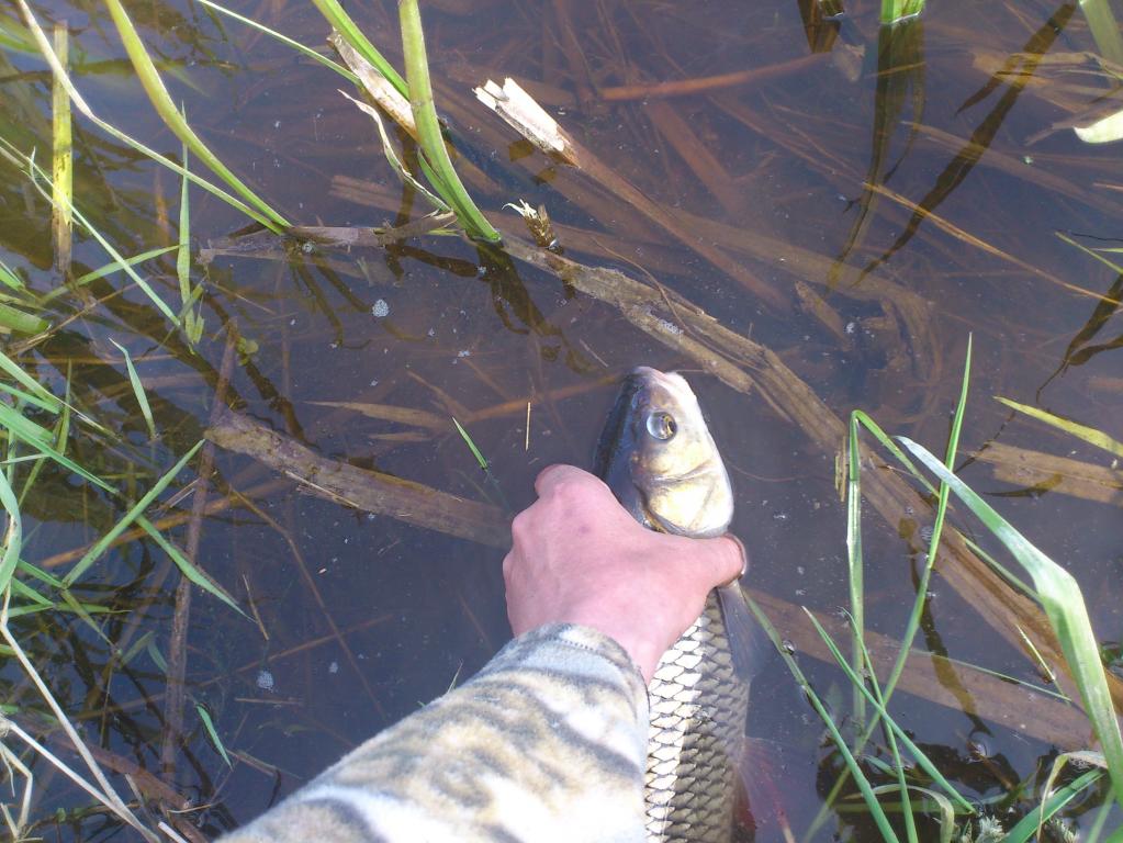 А нет,вот небольшенький соблазнился и не сошёлНу надо запечатлеть первого в этом году. А вот ты мог бы и позвать.И он позвал,я не знаю какую ступень в рыбьей иерархии он занимал,но похоже нерпосто позвал,а объявил общий сбор.В последующие пару часов я наверно сильно напоминал буйно помешанного.Я подсекал,вываживал,фоткал и отпускал, я проваливался в какие то ямы,но это меня нисколько не волновало.За качество фоток ,заранее сори.Нормальный фотик забрала жена,а с андроидом в одной руке,а прыгающим спином в другой,красивых фоток в воде не очень то наделаешь.В этом я убедился уже на первом достаточно крупном,ну полтора в нём точно было,он так красиво на травку в воде прилёг,а тут меню,хреню и держать неудобно.Вообщем надоело ему лежать,он крутнулся,боднулся и поплыл по своим делам.Потом уже на берегу это делал,самому не нравится,но селяви.