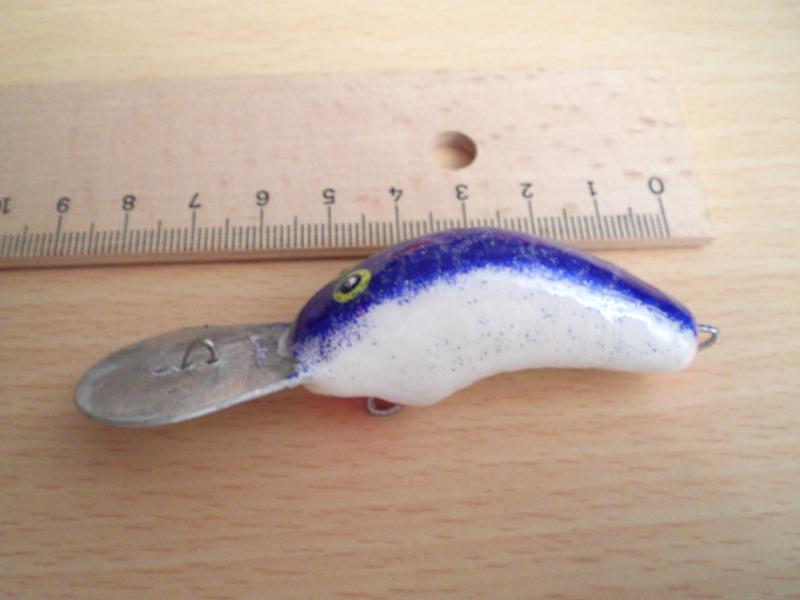 Ничего не поймал, но и не ловил почти. Взял его на рыбалку без финиша, а он возьми да тресни (треснул лак и разошёлся на 1 мм), сначала хотел отправить в утиль, но потом решил исправить - воб высушил и залил LV-1 семь раз. Видимо у него большое будущее... А трещину связываю с тем, что воб из бука. Набрал воды и начал бухнуть... А вообще из этого отряда не разловлены только два - второй тот, что без крючков.