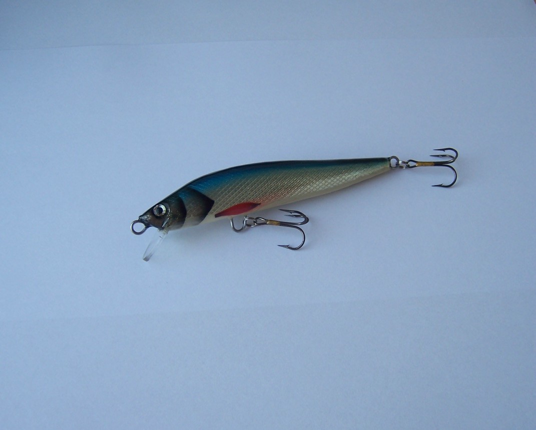 Присутствие или отсутствие выпуклой спинки уменьшает или увеличивает уводы в сторону. Груз 20 % в животе до петли, 40% в животе после петли до хвоста, 40 % в оси воблера (в арматуре) от петли до хвоста. Нормальное положение в воде градусов 25-35 , передняя петля рядом с поверхностью(или вровень или чуть ниже). От носа до петли на животе плоскость для выхода на глиссирование, после петли достаточно острый киль для сваливания на бок.