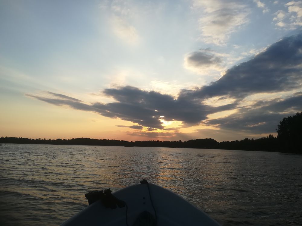 Доброго всем времени суток. Так уж вышло, на любимом водоём год уж как не был. Да и на эту рыбалку месяц собирался,но нет время выбраться и всё тут.И вот выпадает с воскресенья на понедельник, выходные крепко солнышко пекло, а тут в окурат в ночь смена погоды, как раз вышел на лодке и задуло освежающий прохладной. Уровень приличный такой, ещё б рыбка сохранилась, вообще здорово бы было. А и сохранилась, что вскоре и обрадовало. Встал, наладил и пристрелял две уды, одну с расчётом на линя, а вторую на леща. Ну мы можем думать и загадывать всё что угодно, а там уж как ляжет. Просто очень хотелось на рыбалку. Не за рыбой, а как говорил один генерал, - за единение с природой. Первую половину рыбалки не смолкала уда та что практически в траве, вторую половину расклад поменялся и заиграла вторая, та что поглубже и пооддаль от травки.Линёвой поклёвки так и не увидел, а вот подлещик скучать не давал, пореже плотвичка, окушки, краснопёрка. Первый лещ около одиннадцати, второй в полночь, красавец, повозиться пришлось;третий в семь утра. В восемь свернулся. Трёх рыб, в совокупности потянувших на пять с половиной, за глаза хватило и на ушицу и на жарёху.Ох и вкуснотища, скажу я вам, наверно потому что так долго свою рыбку не кушал. Спасибо водяному, и любимому водоёму за прекрасно проведёную ночь.Надеюсь ещё как нибудь выбраться. Всем удачи