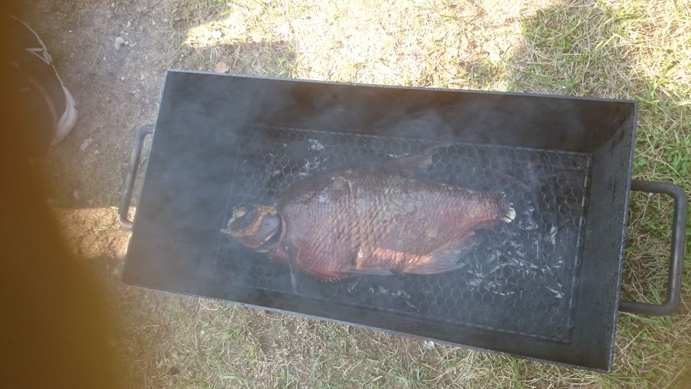Посетили с Наташей сей водоем с пожеланием копченого леща. Купил 3 кг прикормки крупного помола, Экстракт конопли , 100 гр опарышей и , поскольку хотел ловить у дверей домика, то два дня "накрывал стол" в ожидании леща. Мелкая плотва клевала как из пулемета не давая кормушке опуститься на пятиметровую глубину. Утро третьего дня выдалось тихим и удивительным. Над водохранилищем проплыл шар вполне себе местный. И стая лещей пришла на мое угощение. За час поймал 6 штук и решил свернуть рыбалку. Подтянулись сони- рыбаки и я отдал координаты точки лова кампании хохлов, которые сразу начали таскать лещей. А я упаковал снасти в домик, заварил крепкий кофе и распаковал коптилку.