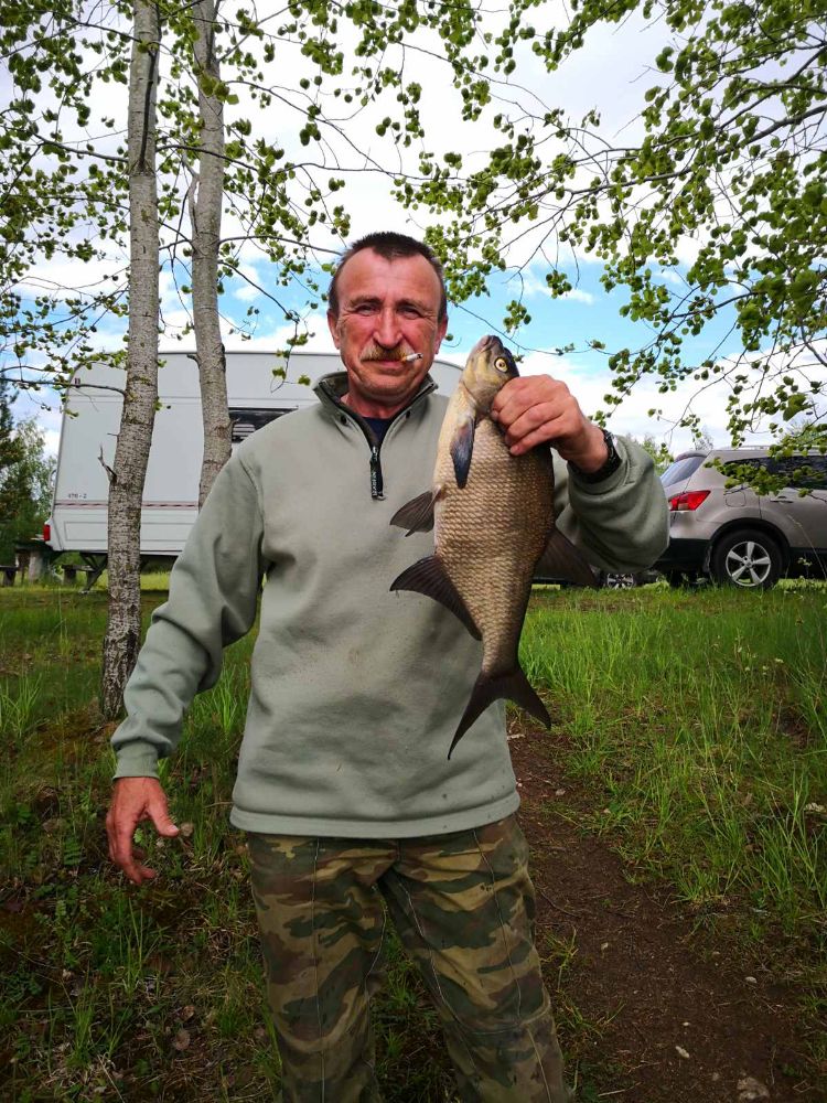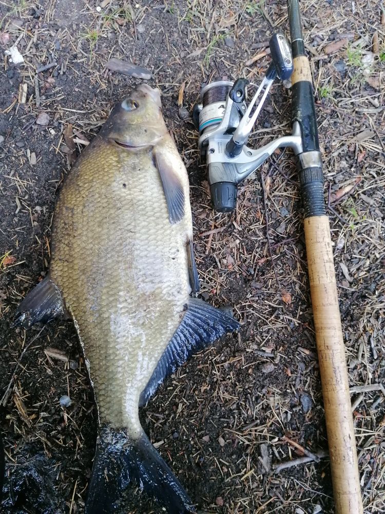 Достойное сопротивление, но не долгое. Подвожу к лодке - неплохенький лещик(1.8кг). В зачет!
