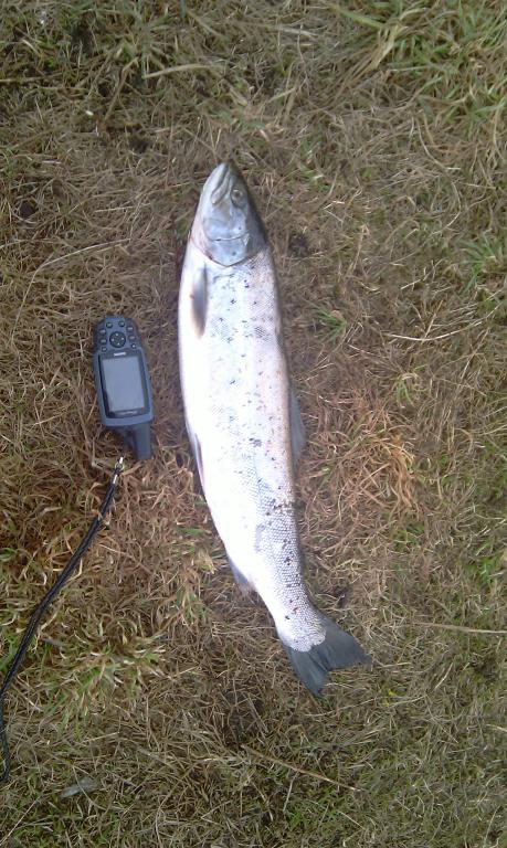Еще один вечер провел на берегу. Погода отличная, пасмурно, ветер, правда присутствовал, но за мысом было где спрятаться. По приезду на точку, в первые полчаса подучил уверенный хап на выбросе. Аккуратно вывел серебристую красавицу на 1,3 кг. Взяла на чистое золото. Потом полоскал еще два с половиной часа разные блесны, ставил и тандем блесна - стример и пробовал "Сбирулино" с мухой, но больше ничего не произошло. Точка, похоже, рабочая, через полчаса после моего приезда на ней появилась команда из знаменитых в наших местах охотников за кумжей. Но, когда я уезжал, никакого движения у них не было.
