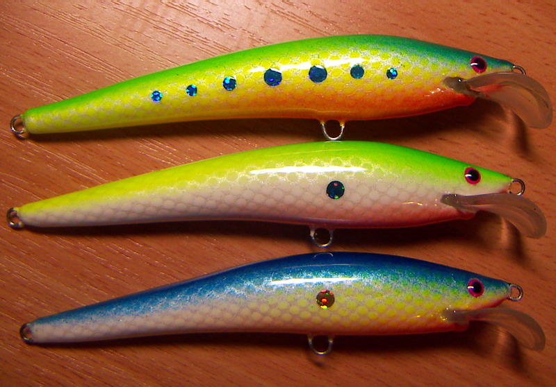 У меня есть поликарбонат толщиной 1,2 мм; 2 мм. и немного 1,1мм. Другого нету пока. 1,2 мм чаще всего использую. У воблеров на моих последних фото длина лопастей 17 мм. Не сломаются. Да и смотрятся при длине тела в 70 мм вполне гармонично. На шедики длиной 35 мм с большим заглублением ставлю лопасти из того же поликарбоната, общая длина - 19 мм плюс там еще прорезь есть. Пока еще ничего не сломалось и, думаю, не сломается, если не дурить. Клею с помощью UHU allplast.luger писал(а): Информативность в общий богаж, 1.2мм не тонкий? Насколько длинные лопаты делаешь из него? Я чёйто сдрейфил - взял 1.5мм