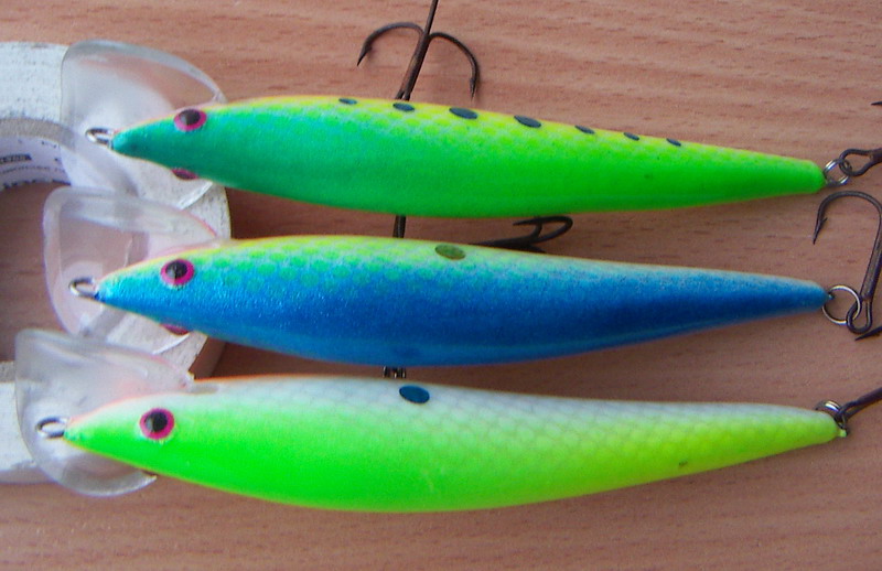Эксперементировал с люминевыми лопатами. ТОлщина люминия была разная,а форма и площадь одинаковая всех лопат.Тушку использовал одну,как у взрослых, с тройниками.Сразу к результату: с ТОНКОЙ лопатой игра воблера намного интересней.С чем это связано