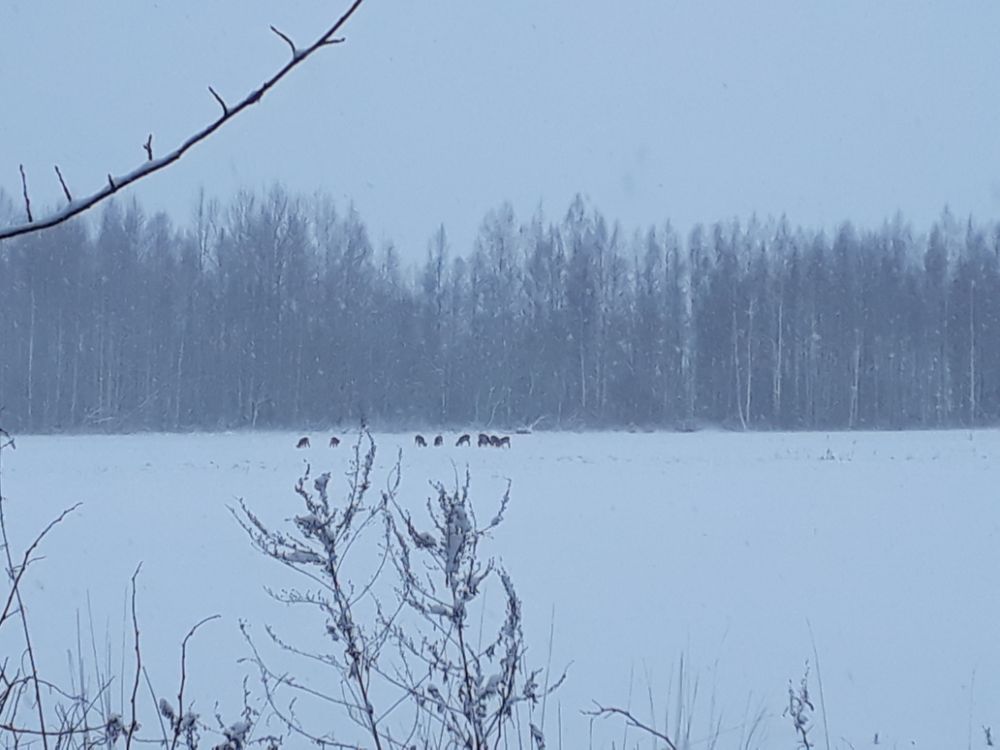 Катались с Ритой по окресностям и заметил на поле большое стадо косуль , решил к ним подьехать поближе и газанул , все белым бело , и не заметил впереди по курсу мелеоративную канаву , на тормозе уже в ней оказались , хорошо не убились.