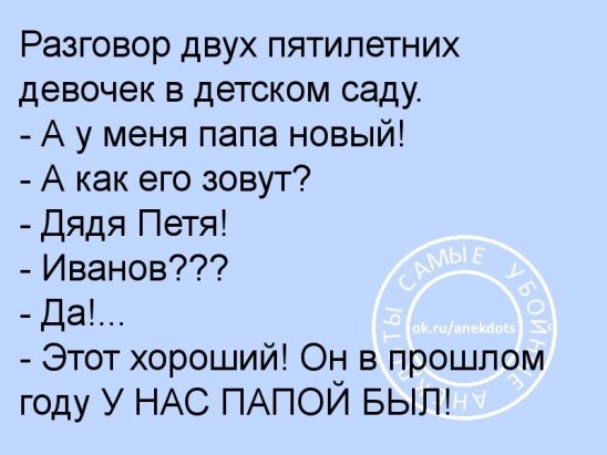- Пап, а пап, дай 500 рублей, а я скажу кто с мамой спит ночью, когда тебя нет...