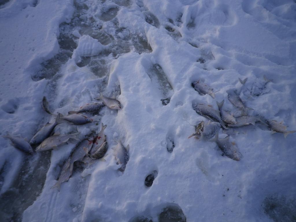 Суббота утром,подморозило супротив вчерашнего.Сегодня другая тактика-ни шагу с места.Опять полнолуние,но небо ясное,знать давление растёт,ветра почти отсутствие.Ну вчерашний опыт уже есть,знаю что предпочитает густера,где самая крупная,начинаю рыбалку затемно,и до четырёх.Как день на день не похож,течение тока в одну сторону,сильное,и очень сильное,без перерыва.Поклёвки тырк,и усё.Этот тырк не то что на донку,на мармышку не успеваешь дёрг делать.Лёгкую-среднюю не поставить,течку выдерживают с напрягом самые тяжёлые,с донки тырк-мотыля сбило-вытягивай насаживай снова.Перепробованы все варианты:кивки-грузила-мармышки,пять удочек с собой,все уже по нескольку раз переделал.После обеда уже и мотыля не хотела,одна штучка за последние четыре часа.Но благодаря вчерашнему опыту пару кило и сегодня осилил.А как красиво сгодня с утречка
