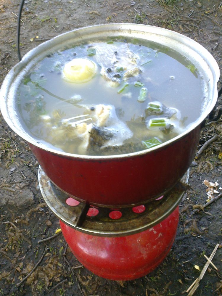 На остатках моей горелки уху почти приготовили, а приятельская работать отказалась.