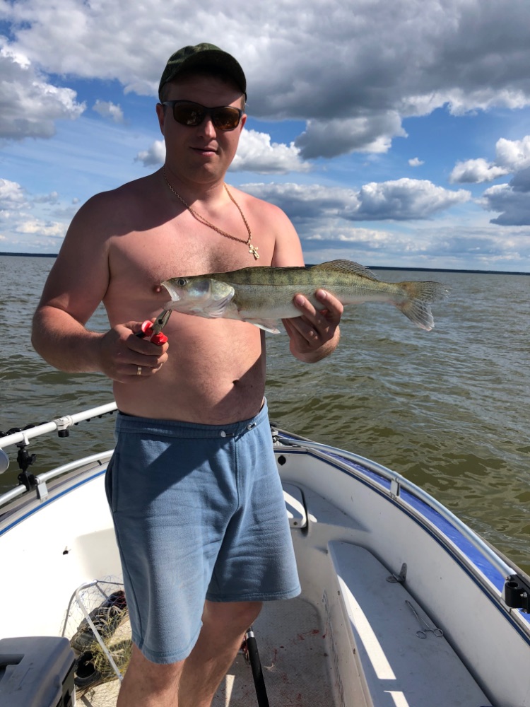 Был на воде неделю назад, на борт поднял несколько десятков рыб размером 40-43см. Очень сильно капризничает он в этом году в плане приманок - работает далеко не все, что работало всегда и до кучи на одну и ту же приманку клюет 2-3 судака и потом тишина, меняешь на другую приманку и опять 2-3шт и т.д