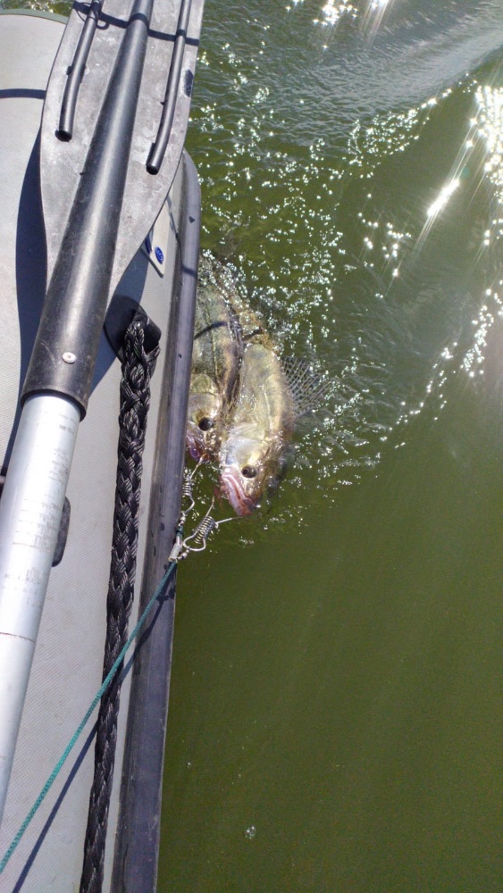 Друг сегодня с ночи поехал, вода мутноватая, лодок много. К 9 утра взял всего 3 штуки, 2 за борт, один зачёт.