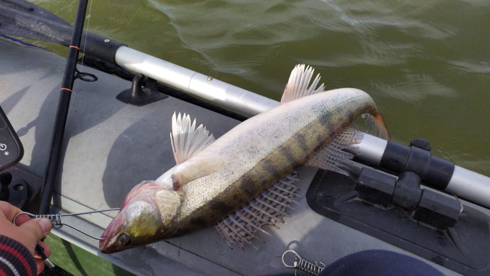 Друг сегодня с ночи поехал, вода мутноватая, лодок много. К 9 утра взял всего 3 штуки, 2 за борт, один зачёт.