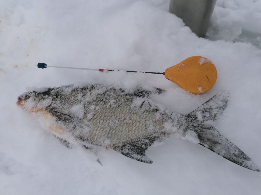 Очередной удар по самомнению был нанесён вчера. Погодка мягкая, махнув на окуня рукой, настроился на подлещика. Ну эти-то рыбалки по памяти интересные. Хоть и не за рыбой, а так в охотку;но когда ходишь играешь, играешь кивком и так и эдак и наоборот, а в ответ ни чего не происходит, честно говоря под конец рыбалки начинает выносить мозг. Пришёл закормил восемь лунок, прошёлся тишина, добавил ещё три на глубину, чтоб точно все глубины охватить. Теплело, ну думаю, сейчас соберётся на прикомку, повеселюсь. Не отгадал. С четырёх на шесть метров и всё мимо. В двух лунках меньше даже чем в пол воды встала мелочишка, с шести метров поднял окушка, с пяти трёх подлещиков, только один из которых подходил на фотосессию, ну и одну поклёвку получил с пол воды, скорее всего щукарь мелочишку гонял. Вот и всё, почти на пол ведра прикормки. Очень впечатляюще.Даже не знаю выдержу ли ещё один такой удар, лучше пойду ворон покормлю.