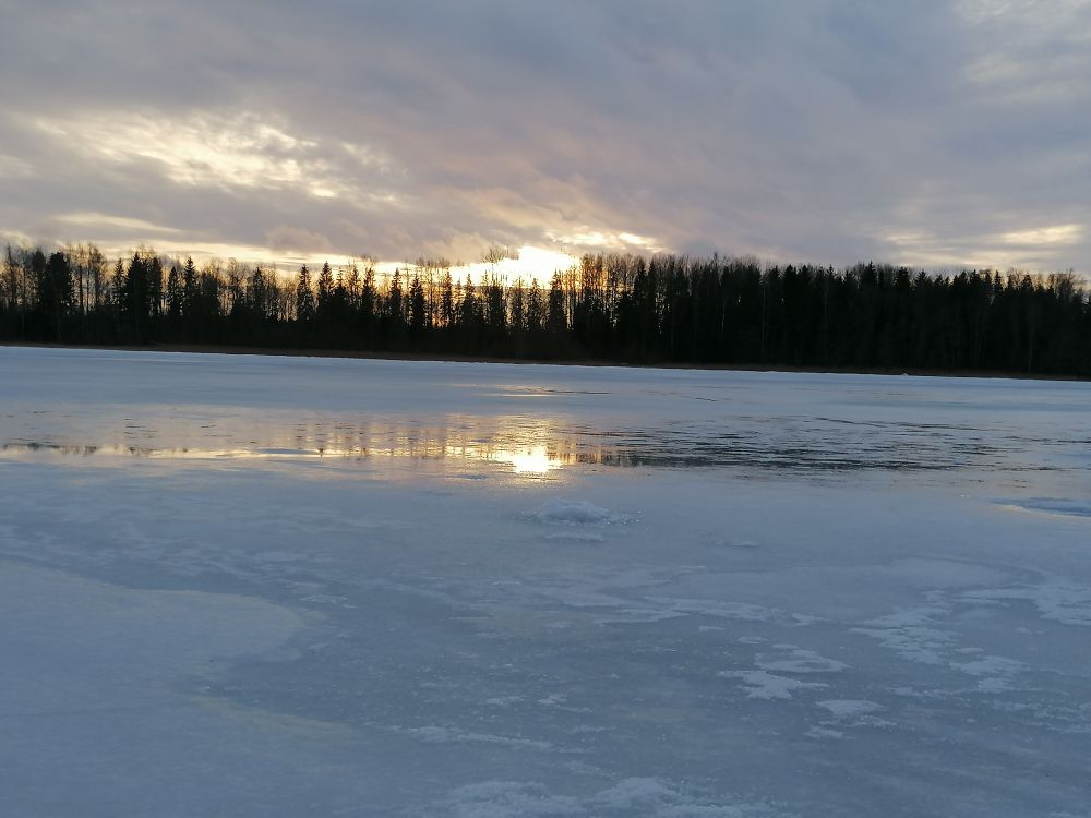 Прогулялся по Паункюла,с двадцати лунок одна поклёвка со сходом и спичечный окушок.Подъехали спасатали,выставили плакаты"Выход на лёд запрещён".Толщина льда 30 см,крепкий без снежной каши.Пошёл на канал на сковородочку плотвичек надёргал ,до 50 гр,грустно(((