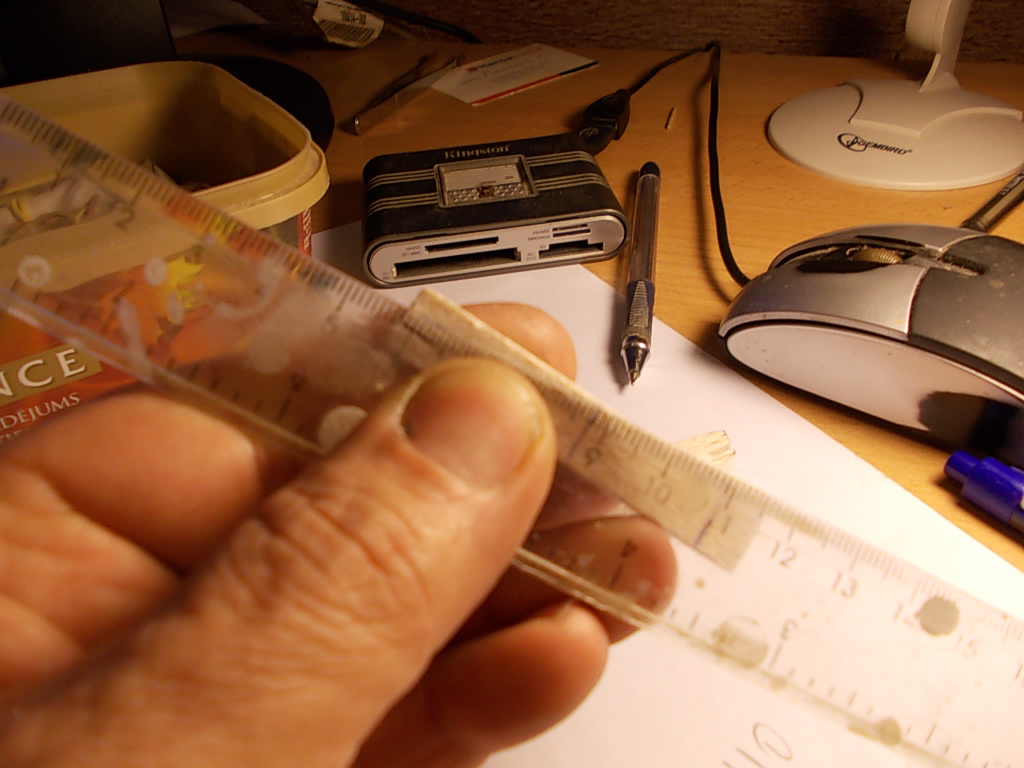 затем при помощи линейки или пилки по металлу, или просто ровным предметом провожу прямые линии от хвоста к поперечной полосе (особо не вымеряю...) и от головы к другой поперечной линии...
