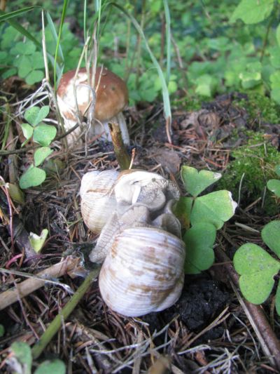 Нашел боровик, а рядом за него уже деруцца улитки, ну правда может и сношаюца, кто их знает