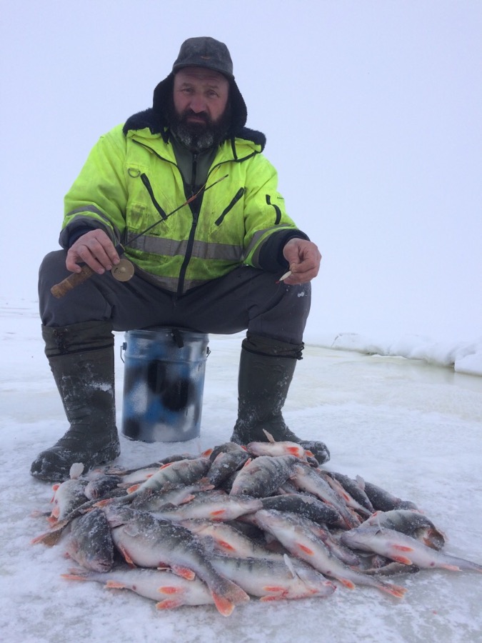 Сегодня 9.02.2018, на Чудском озере, на 5-ом километре , над Ремнику, какой то киваль, поймал ооочень достойного размера окуней! Я проезжал мимо и не смог удержаться что бы не сфотографировать его! Молодец , хорошо поймал!!!!