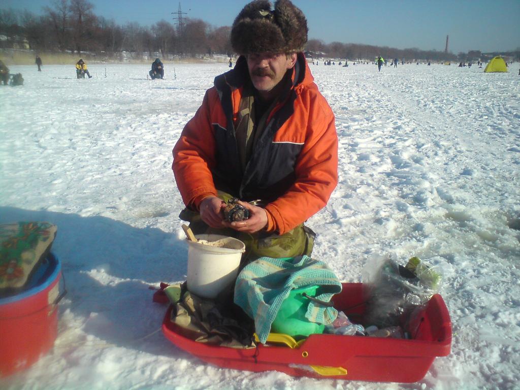 Всем доброго времени суток.Начну по порядку,а по порядку это из далека.Мысля об этом начала зарождаться две недели назад.Но,так получилось,что прошлые выходные накрылись медным тазиком.Жена поставив меня в известность о том,что она тоже человек,умотала на два дня,от домашних хлопот,оставив меня за главнового;возражения не принимались.Что поделать,последнее время действительно бываю дома редко.В пятницу приехав домой,по дороге прикупив матыля,потирая руки,что субботняя рыбалка мною честно выстрадана;захожу в ванную комнату,а там сюрприз,чуть не катастрофа...и пол дня субботы изображал из себя умного сантехника.Как бы там не было,но с поставленной задачей справился,главное теперь самому не забыть за рабочую неделю что через что включается.Получается у меня в активе уже два плюса,а толку-то день остаётся тока один.Разложил вечерком удочки,снасти на столе,половину универсальных перевязал,коробочку с мармыхами распотрошил,проверил поддточил затупившиеся.Осталось зарядить пару уд,и тут встал волрос:а куда в принципе я собираюсь?Поставмв себе перед выбором четере места,так и не смог определится;решив,что утро вечера мудренее,отправился мять репу,даже не став заводить будильник,как встану,так и определюсь.Проснувшись с мыслью,что проспал,и действительно,но это смотря куда,хотя если быренько,то не особенно то и проспал.Сигарету в зубы,кофе в рот,кипяток в кашу,удочки в ведро,ногу на газ.Лечу низенько над землёй,а солнце предательски начинает мелькать на краю земли,по зеркалам и макушкам деревьев.Успокаиваю себя мыслью,что всё равно минус пятнадцать,рыбы ещё не проснулись,лунки замерзают,так успокаивать себя приходилось час сорок,быстрее не долетть,проверено.В семь ровно на стоянке,весь мокрый,как-будто не я на ней ,а она на мне.Всё же весна и день явно уже длиннее ночи.Рыбачь скока душе угодно.Интересно,что Игорь имел ввиду,когда говорил о том что рыба должна быть там где и всегда?Если он думал что я догадаюсь,значит должен.Вот сдесь говорит мне глаз,сверлюсь,четыре метра.Это чуть не то место,да я и сам знаю,однако посмотрим.Посмотрел да так до завершения рыбалки и остался. Чуть смалодушничал,не приземлившись по форватеру,но хотелось хоть раз за всю зиму азартную рыбалку прочувствовать.И опять не получилось,хотя начало было обнадёживающим.За первые пару часов,кило около четырёх,особо не привередничая,а вот дальше,и чем дальше,тем интересней;чуть до садомазохизма не довели,точнее довели.Когда начиноло складыватья впечатление,что рыбы больше нет,проверка-спускается леска наитончайшая,мармышка нимельчайшая-оказывается рыба есть,вот тока всё попало есть у неё ни малейшего желания.Но эта тонкая леска,начинает витать в воздухе раз за разом наматывая петли,мармышка-не поймёшь,дно ты поймал,либо лесу начало вытягивать;поэтому эта уда опять откладывается и чуть всё увеличивается,и тут уж виртуозная игра,и сегодня тока со дна и с паузами,ну по крайней мере у меня.К четырём устал.Домашнее взвешивание показало четырнадцать кило поровну густеры и плотвы,и так же пятдесят на пятдесят размер хороший и средний,мелочь можно сказать не докучала,лишь несколько штук отправились обратно в лунку.Интересно ловил почти в одиночестве,лишь днём человек десять выстроилось в культурную цепочку,да несколько человек с балансирами по форватеру.Рыбак