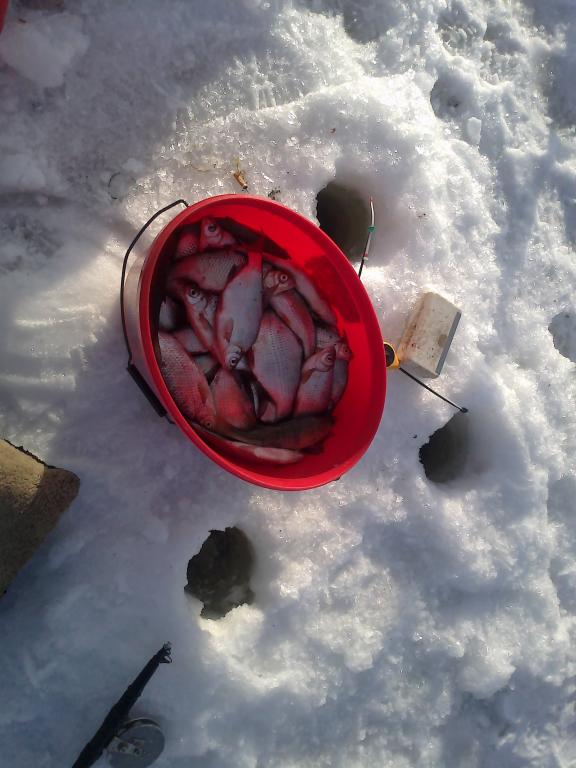 Ловили два дня подряд почти в одном и том же месте, в основном густера, но попадаются и мерные плотки. В пятницу народу было ужасно много и походу большинство заняло место еще в четверг вечером т.к придя на лед в 8 утра, пришлось немного поискать себе место. Утро пятницы было тихое, раздача началась примерно в обед, итог на двоих - примерно 3-4кг плотвы и 8кг густеры. Сегодня наоборот, народу значительно поубавилось, придя чуть после 8ми сразу закормившись, началась раздача, за пару часов было поднято около 7кг густеры и плотвы. Спонтанное желание поэкспериментировать с прикормкой дало свой результат, прикормка работала отлично. После обеда клев стал стихать и мы отправились домой. Это были мои первые две зимние рыбалки, но сегодня я обловил многих бывалых, которые уже не первый год рыбачат зимой