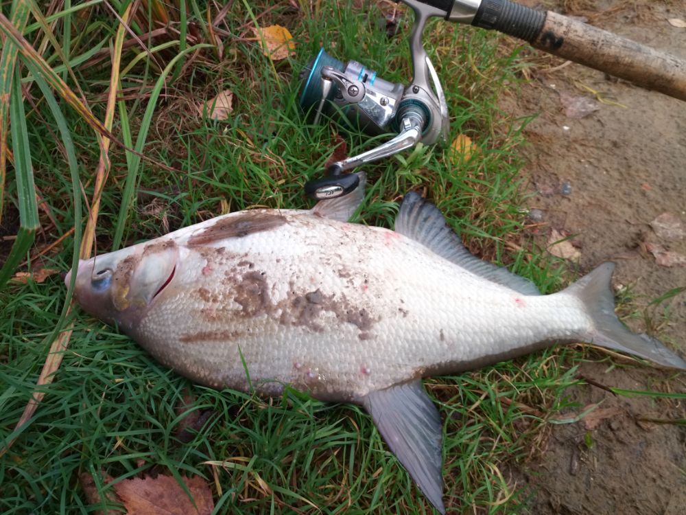 С последнего посещения урез воды сильно отступил. В 6 утра начал закорм. Первый, неплохенький влетел с рассветом. Утренний клев получился. Затем со сменой ветра, лещ ушел на пообедать.