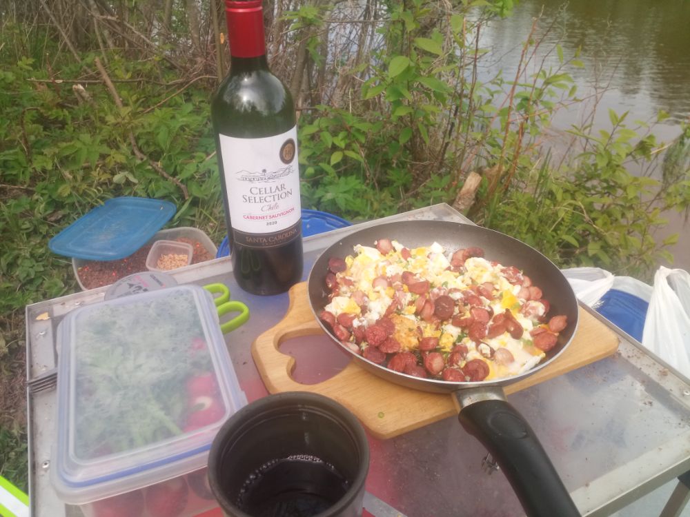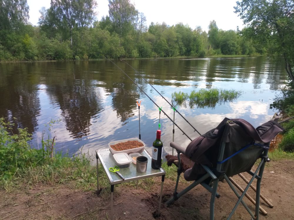 На реке сел на одно из проверенных мест. Всё вроде по феншую.Накатил за встречу.