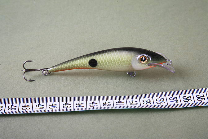 Вот ещё один с двойной игрой. Бальза 11см,с огрузкой жабры и плавник из скотча, крашенно на воблере.