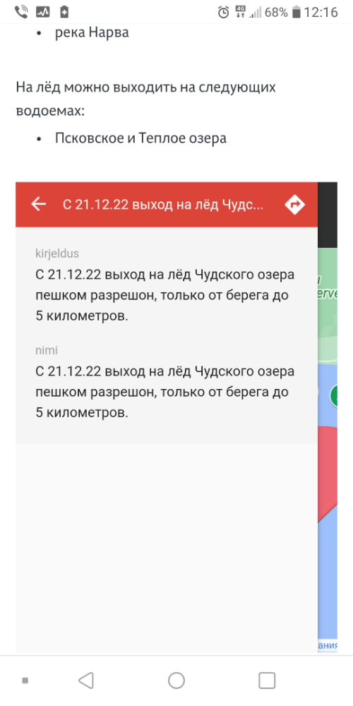Звонил товарищу в Роотсикюла, говорит лёд весь поломало, под берегом вода
