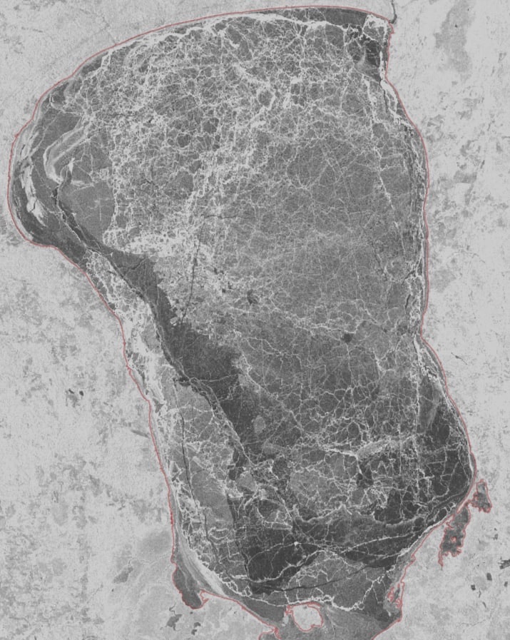 Вчерашний снимок….трещина со свежим льдом на месте. Огромный торос вдоль всего северного побережья. Угол у устья Наровы тоже гуляет. Западное побережье под берегом тоже всё в торосах, лично наблюдал в воскресенье.
